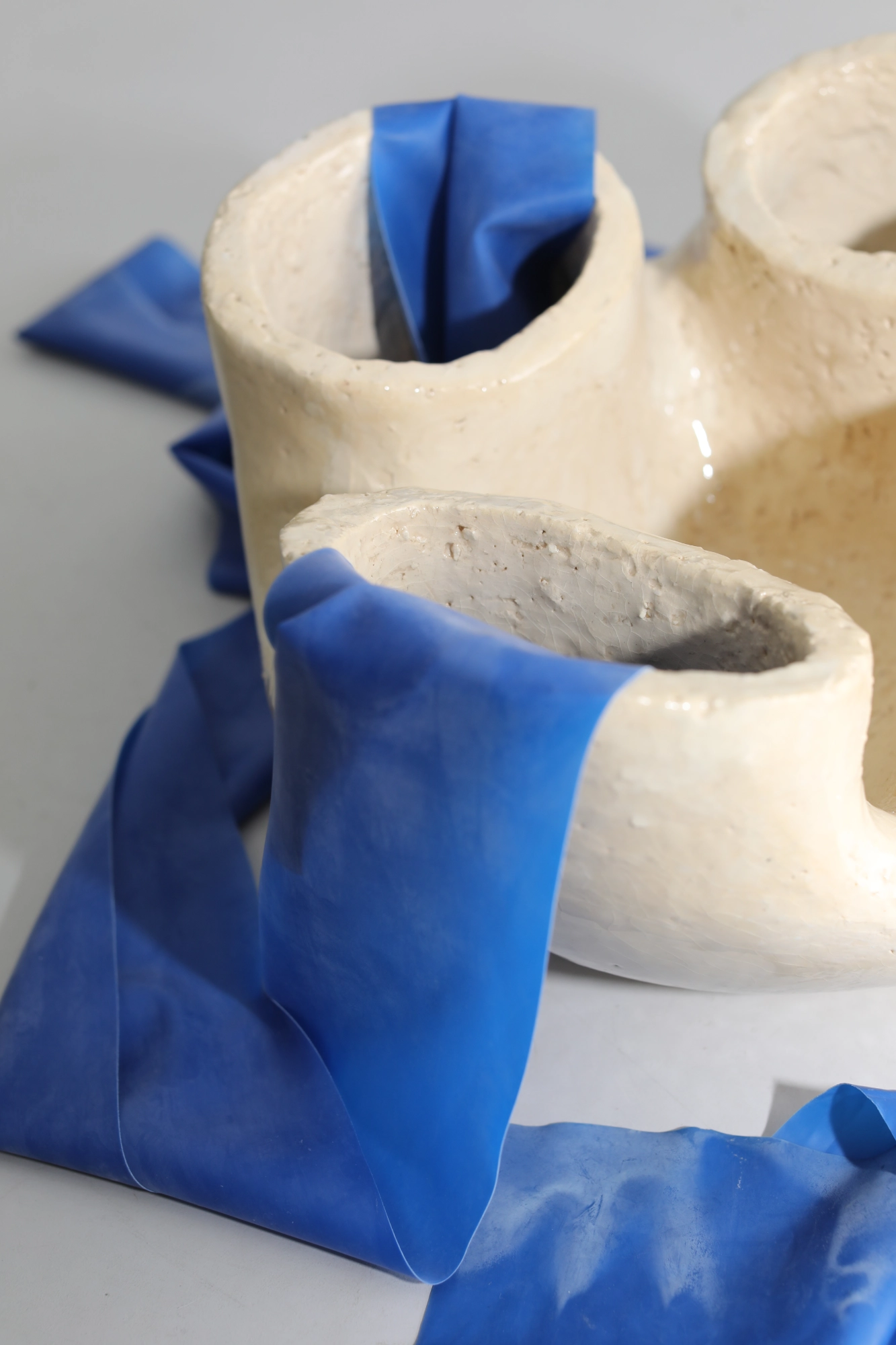 Chatty Matter II Zoom Zoom Zoom 2023 | u. a. Saarländische Galerie e. V. Keramik, Sprotgummiband, verschiedene Größen