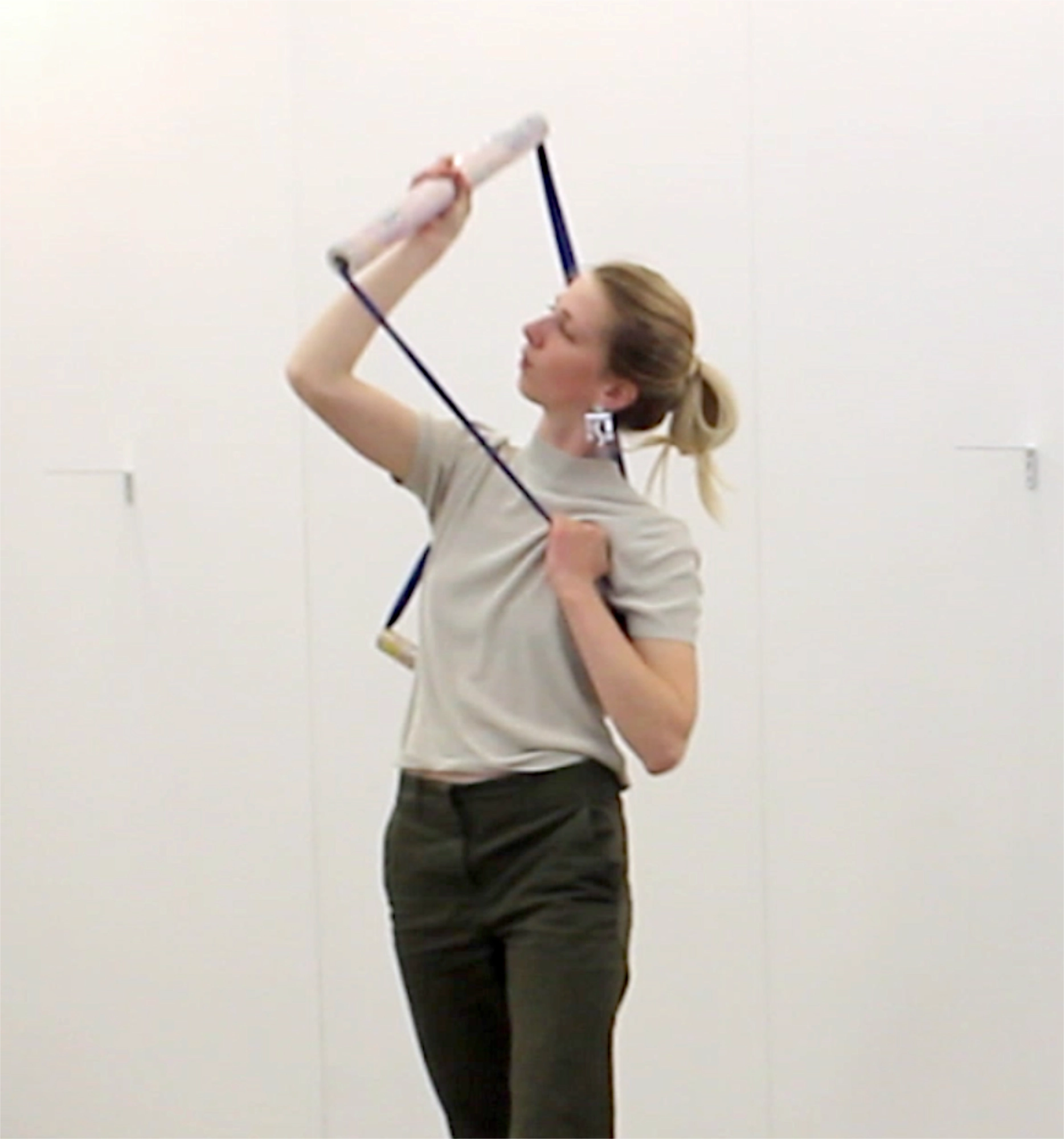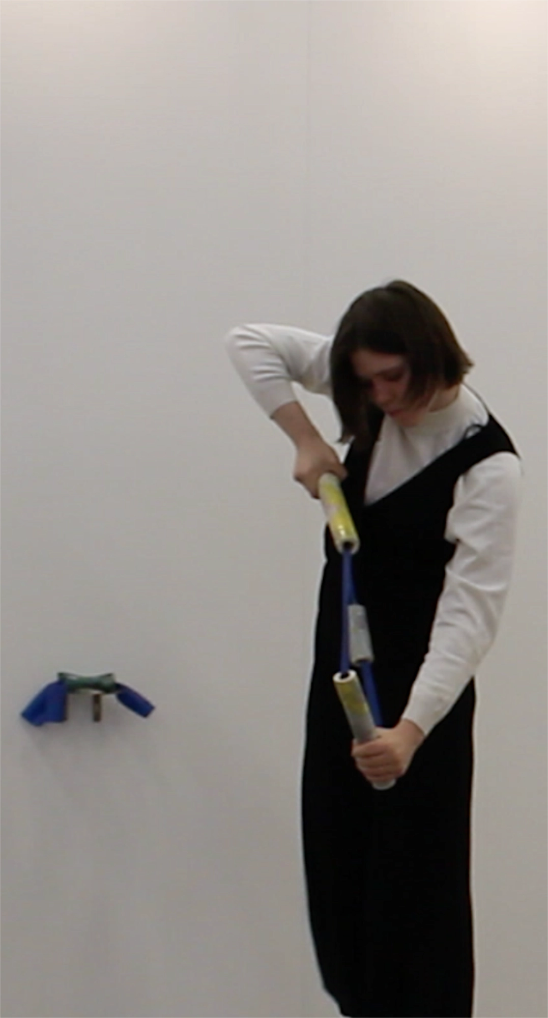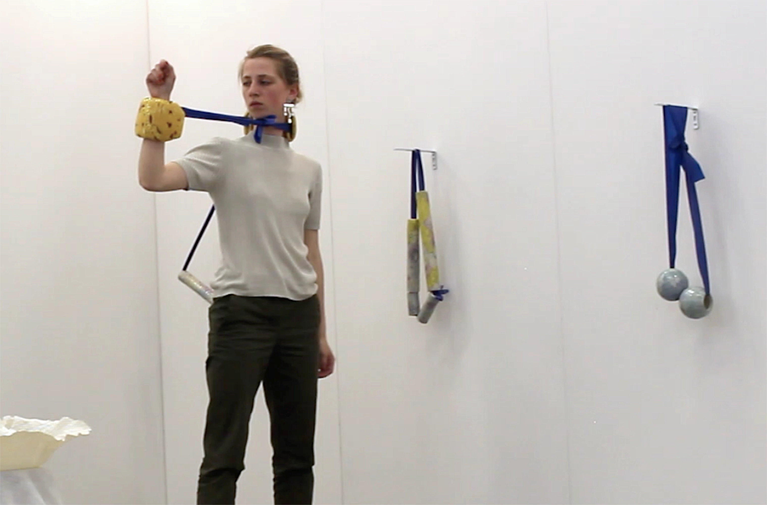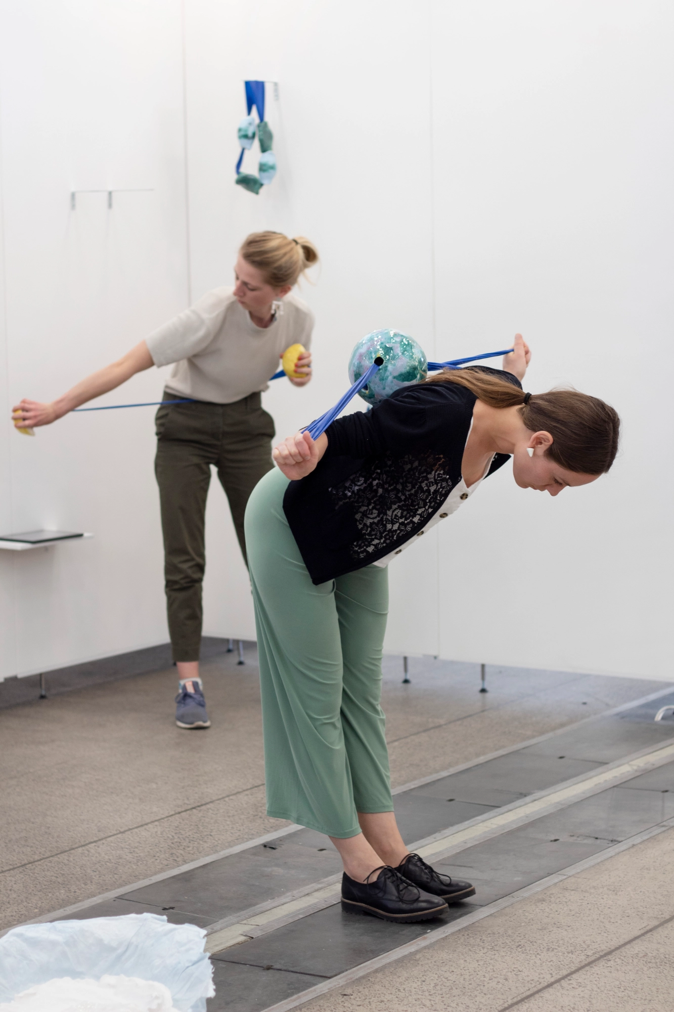 Chatty Matter Zoom Zoom Zoom 2019 | Galerie Kogo, Tartu (EST) mit Kati Saarits und den Tänzerinne Age Linkmann, Tavi Rei und Saulė NoreikaitėObjekte: “hmna”, “krzz”, “clong”, “wum”, “uwapp”, “njia”, “uu” and oou”, “ratter” und “tshap”